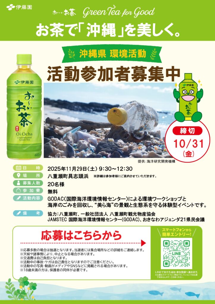活動参加者募集中ぐしちゃん浜沖縄県環境活動伊藤園お~いお茶沖縄伊藤園八重瀬町観光物産協会やえせ八重瀬町沖縄