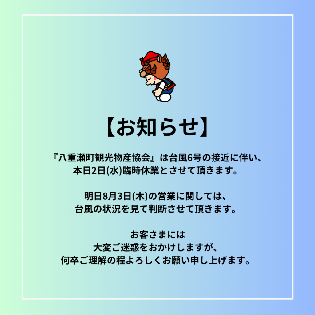 『八重瀬町観光物産協会』は台風6号の接近に伴い