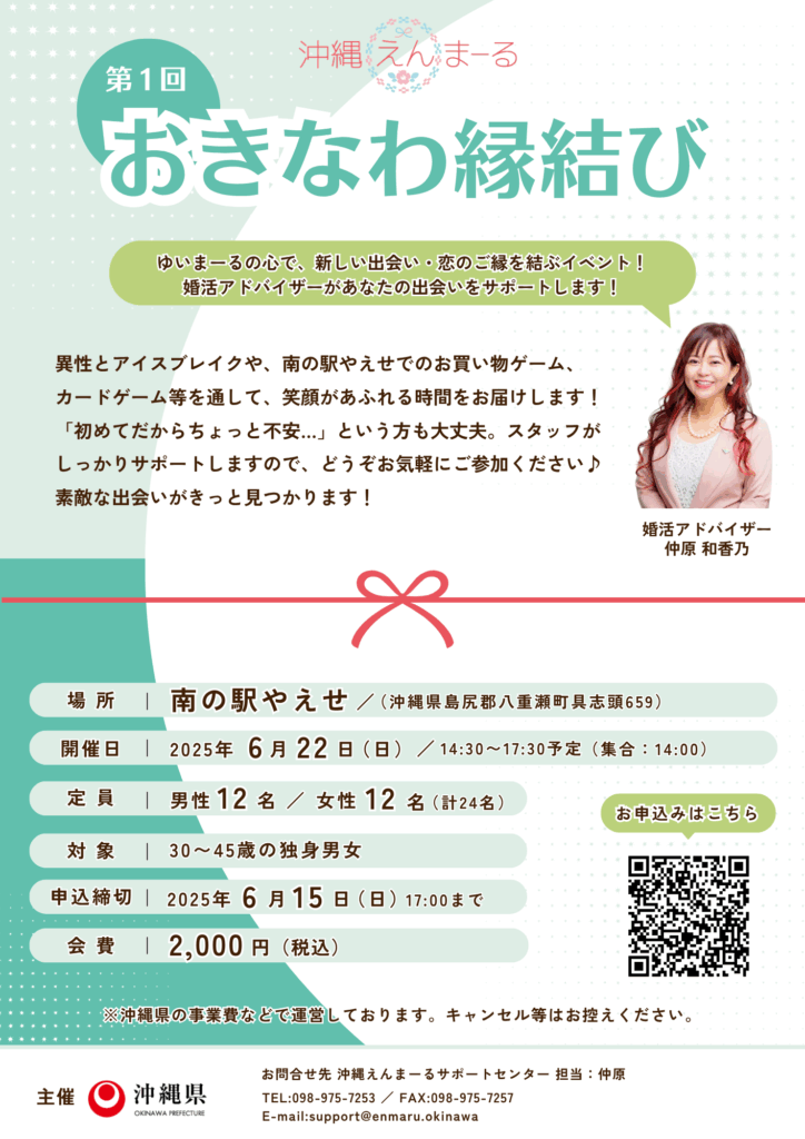 この度、沖縄県が主催する「おきなわ縁結び」イベントが八重瀬町で開催されることになりました♪