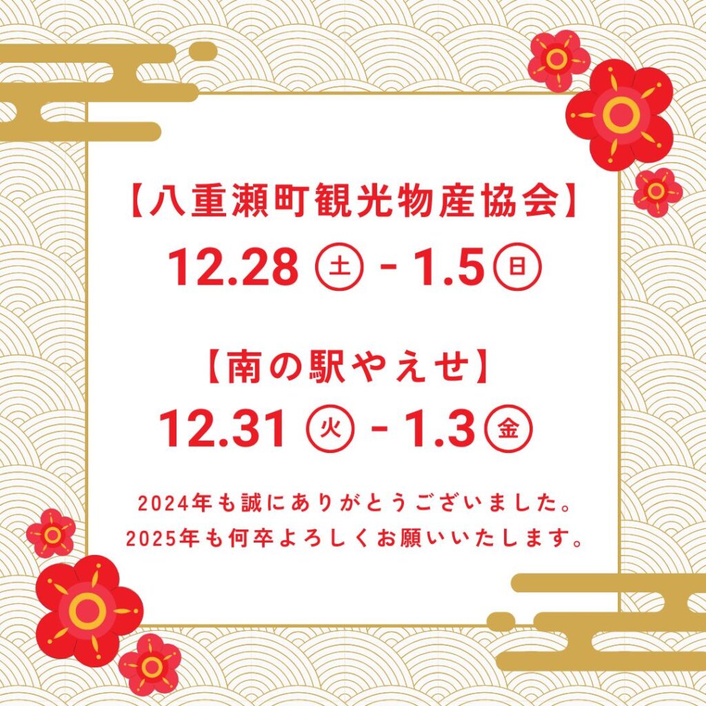 一般社団法人八重瀬町観光物産協会では誠に勝手ながら、年末年始休業日を
