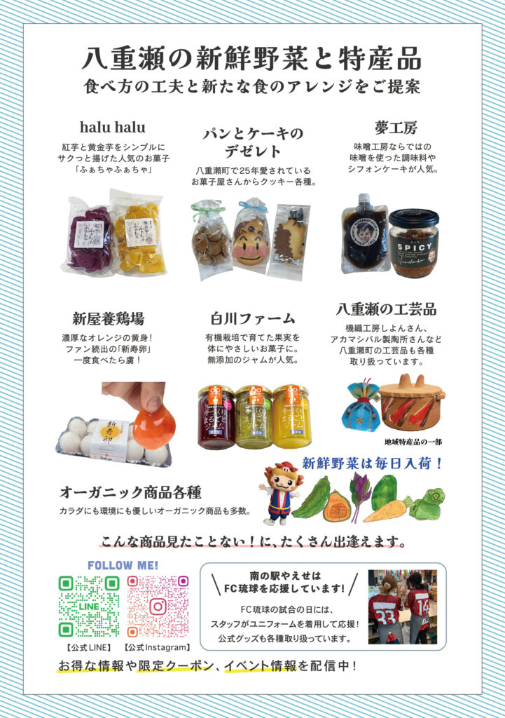 FC琉球を応援しながら、ぜひ南の駅やえせの商品もGET!!!