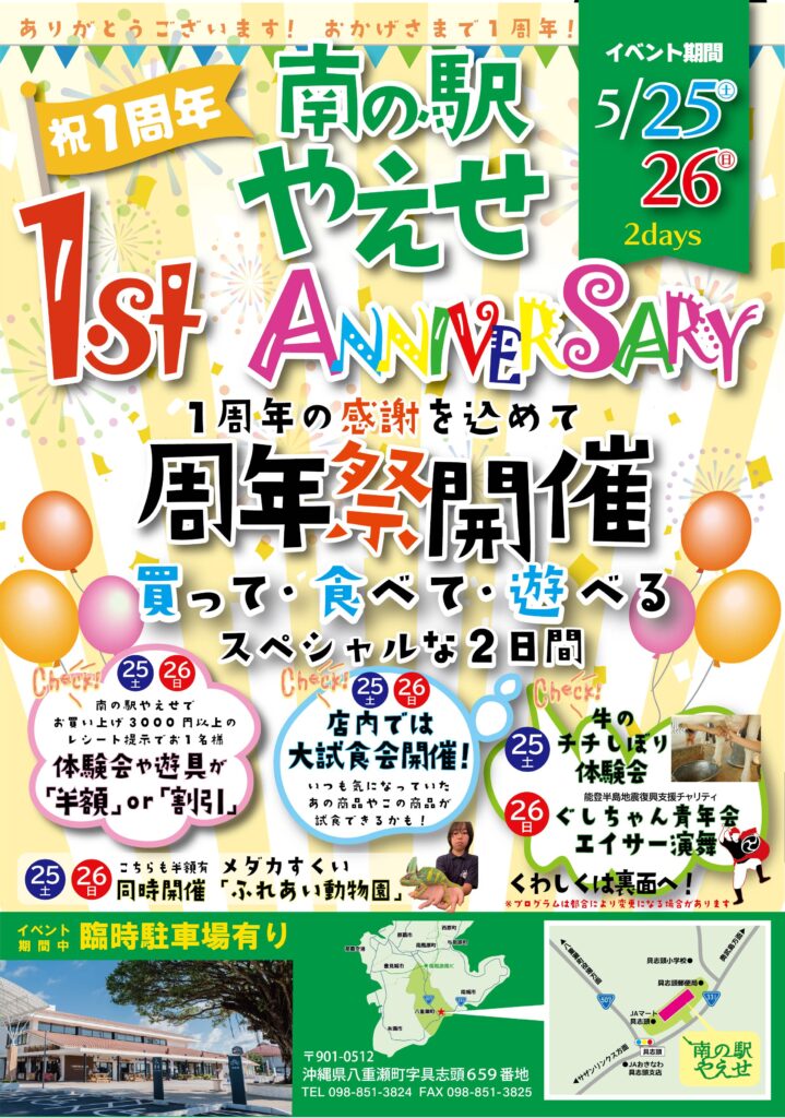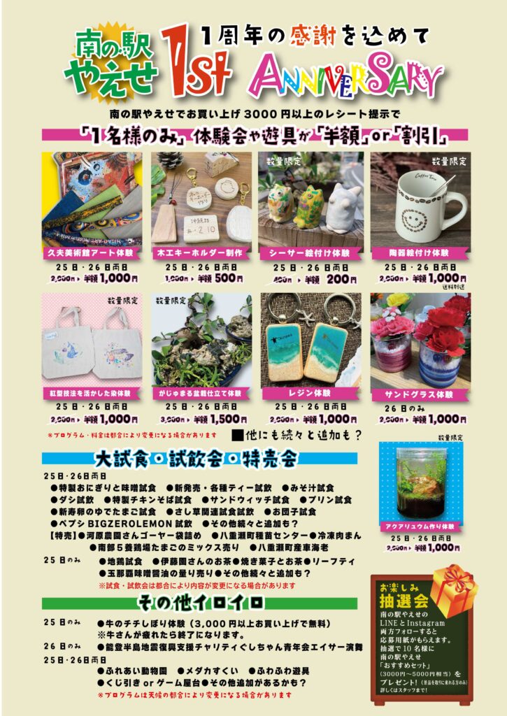 南の駅やえせイベント 南の駅やえせはリニューアル1周年を迎えます。