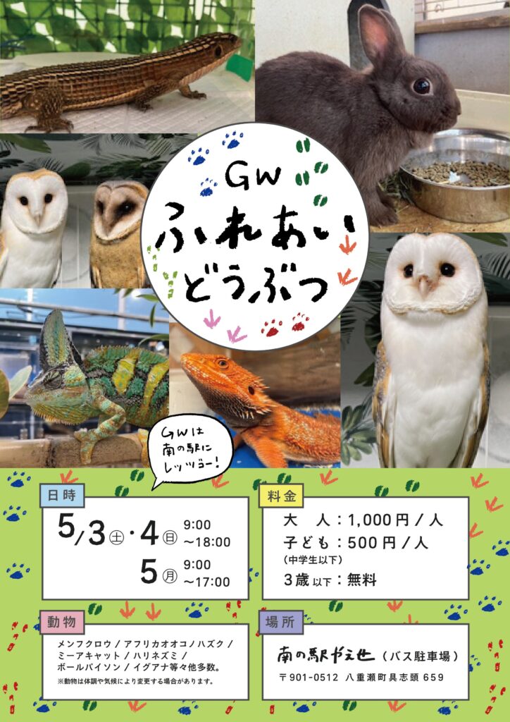 5月3日~5日は南の駅やえせにふれあい動物園がやってくる!