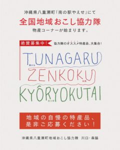 「南の駅やえせ」で、全国の地域おこし協力隊さんがオススメする地域の特産品を集めて 「全国地域おこし協力隊物産コーナー」を作る企画を進めております! この企画は、同じ地域おこし協力隊として活動しながらも、 なかなか他地域の […]