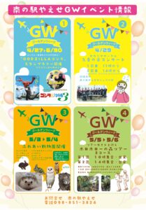 南の駅やえせではGWもイベント盛りだくさん! ゴジラのイベント、オカリナコンサート、ふれあい動物園、ホロホローの森ツアーなど ご家族で、ご友人同士で南の駅やえせであそぼー!