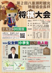 第50回小学生名人戦沖縄県予選同時開催 主催・運営 日本将棋連盟沖縄県支部連合会 協賛 一般社団法人八重瀬町観光物産協会 期日 2024年11月4日(月祝)予選および決勝 時間 S~B級 集合:9時30分 対局開始:10 […]