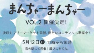 2月に開催して大賑わいだった第1回まんちゃーまんちゃー。 早くも第2回の開催日が決定。 次回は5月12日(日) 次回もフリーマーケット開催。 新たなコンテンツにも乞うご期待!