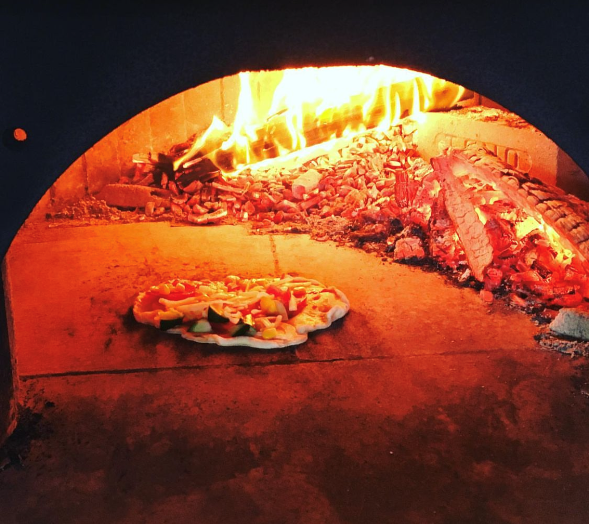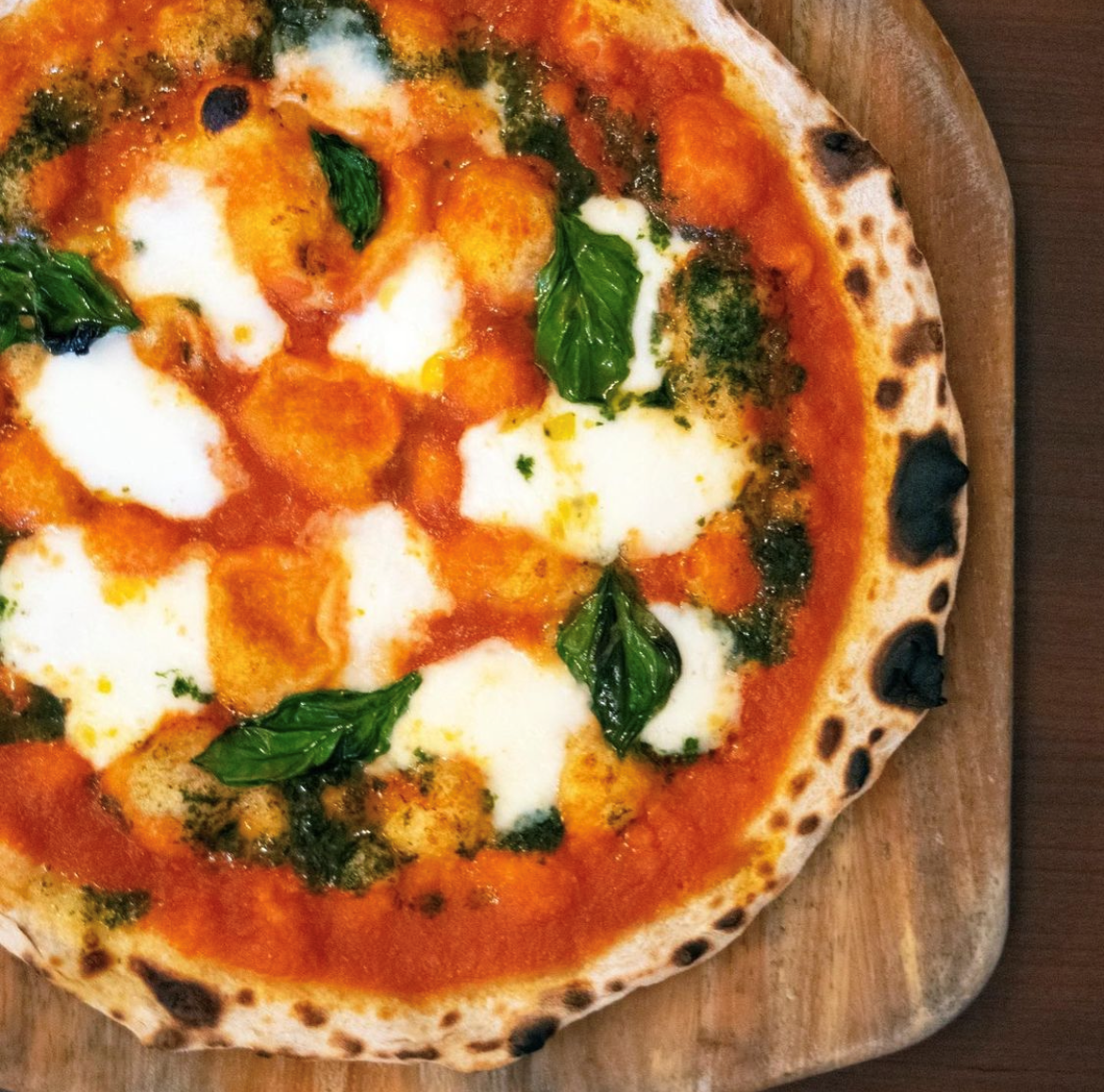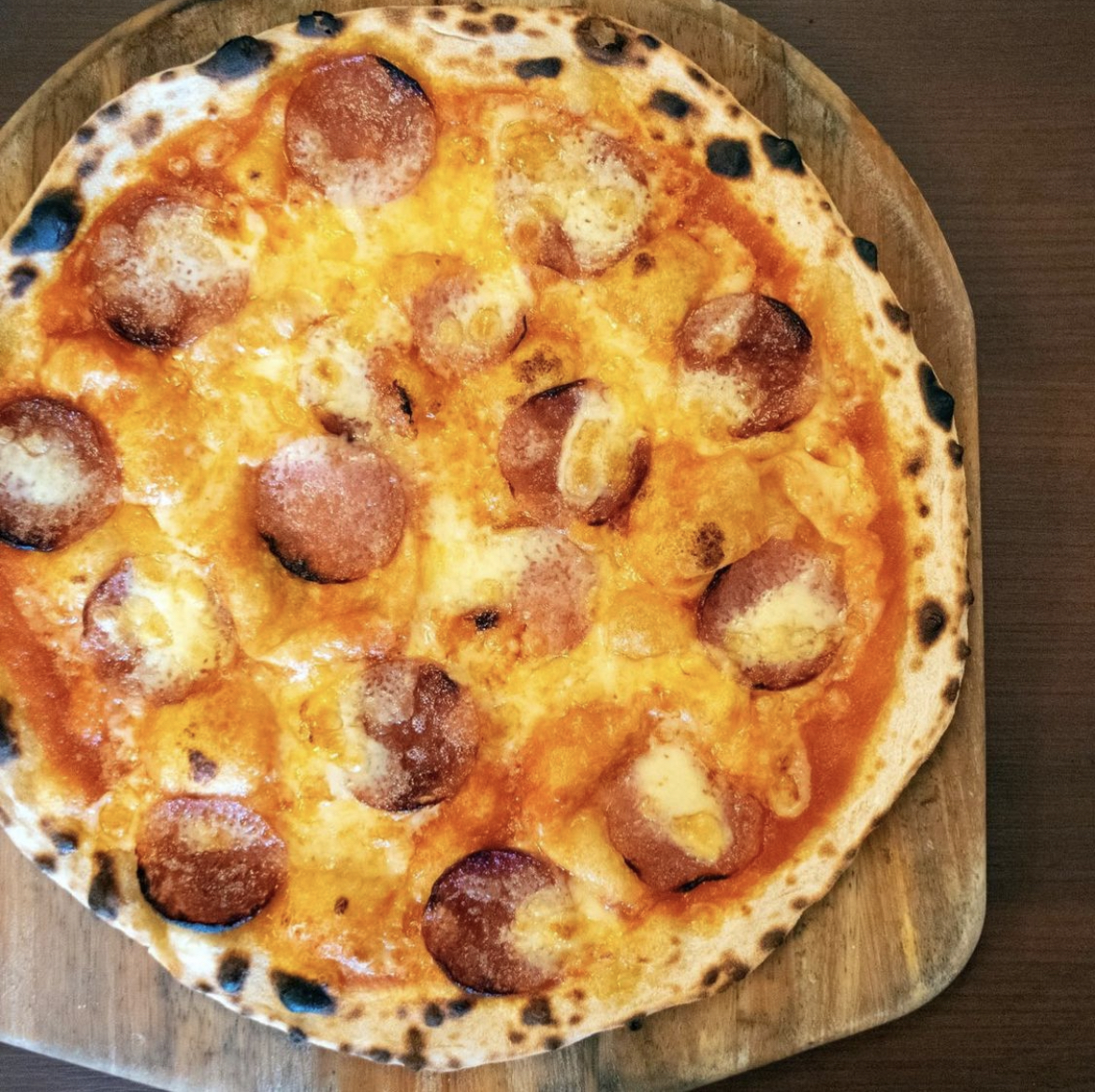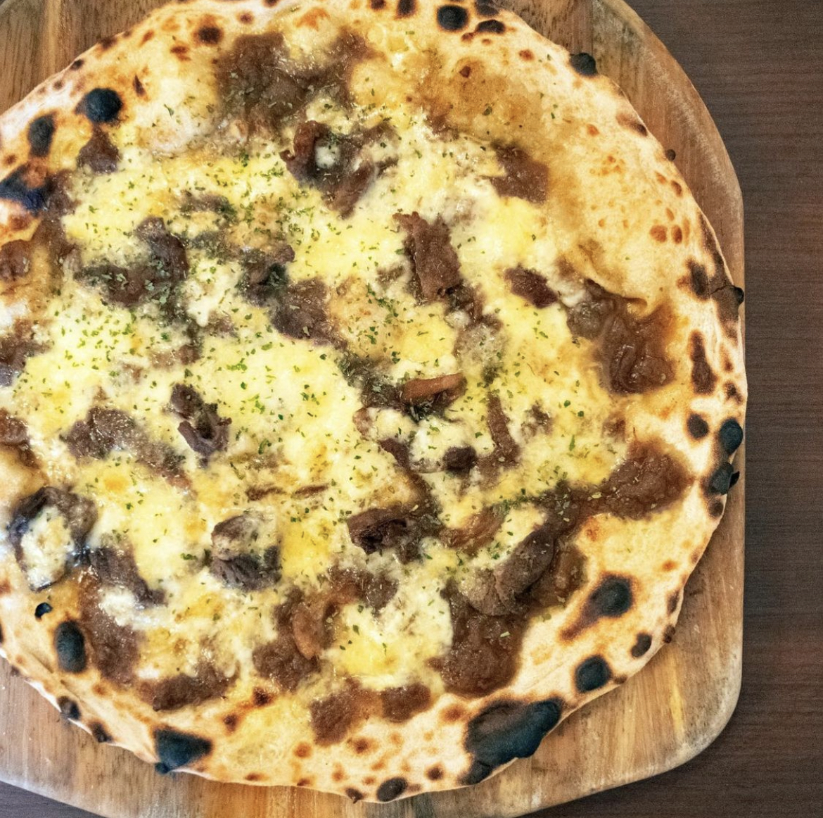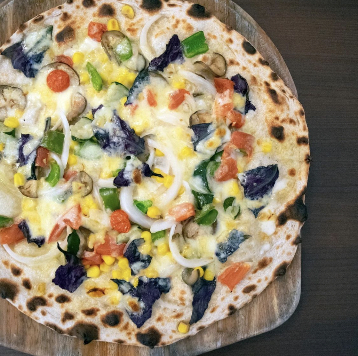 石窯で焼く自家製ピザは薄めの生地に、お皿からはみでそうな大きさでボリューム満点♪